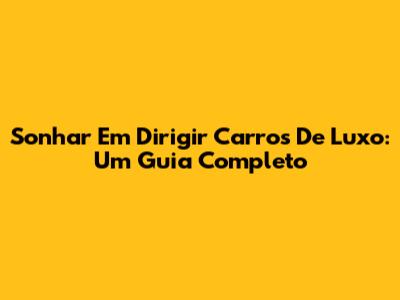 Sonhar Em Dirigir Carros De Luxo: Um Guia Completo