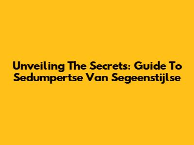 Unveiling The Secrets: Guide To Sedumpertse Van Segeenstijlse