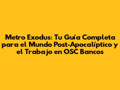 ¡Hola, gamers y buscadores de empleo! Si eres un fanático de Metro Exodus y también estás pensando en tu futuro laboral, ¡has llegado al lugar correcto! En este artículo, vamos a fusionar el emocionante mundo post-apocalíptico de Metro Exodus con el mundo laboral, específicamente, exploraremos la relación entre el juego y la búsqueda de oportunidades en OSC Bancos. Prepárense para una aventura que combina la supervivencia en el Yermo con consejos prácticos para su carrera profesional. ¿Listos para sumergirnos en este fascinante cruce de mundos?