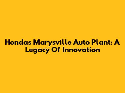 Honda's Marysville Auto Plant: A Legacy Of Innovation