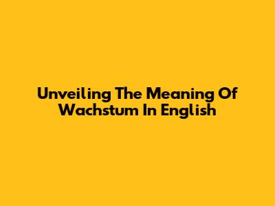 Unveiling The Meaning Of Wachstum In English