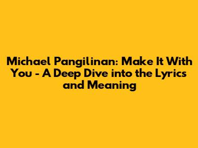 Hey guys! Today, we're diving deep into a song that's captured the hearts of many, Michael Pangilinan's rendition of "Make It With You." This iconic ballad, originally by Bread, has been given a fresh and emotional treatment by Michael, and it's totally worth exploring. We'll break down the lyrics, get into the vibe, and figure out what makes this song resonate so much with us.
