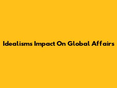 Idealism's Impact On Global Affairs
