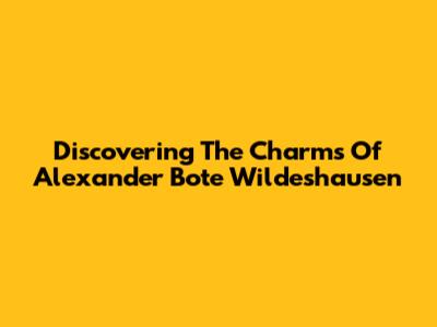 Discovering The Charms Of Alexander Bote Wildeshausen