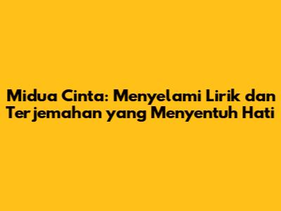 Midua Cinta adalah sebuah lagu yang telah berhasil mencuri perhatian banyak pendengar musik. Dengan melodi yang indah dan lirik yang mendalam, lagu ini mampu menyentuh hati pendengarnya. Dalam artikel ini, kita akan membahas lirik dan terjemahan Midua Cinta, serta makna yang terkandung di dalamnya. Mari kita selami lebih dalam tentang lagu yang satu ini, guys!