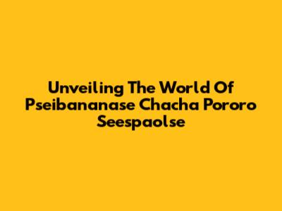 Unveiling The World Of Pseibananase Chacha Pororo Seespaolse