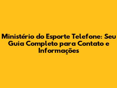 - Onde encontro o número de telefone do Ministério do Esporte? O número de telefone oficial pode ser encontrado no site do Ministério do Esporte, na seção de contato. Verifique sempre as informações mais recentes para garantir que você esteja usando o número correto.