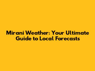 Hey guys! Ever found yourself wondering what the weather in Mirani is going to be like? Whether you're planning a weekend getaway, a crucial outdoor event, or just your daily commute, knowing the weather conditions is super important. This comprehensive guide dives deep into everything you need to know about Mirani weather, ensuring you’re always prepared, come rain or shine!