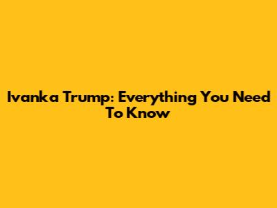 Ivanka Trump: Everything You Need To Know