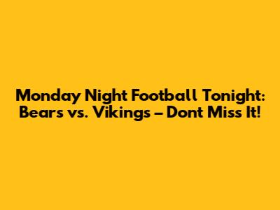 Hey football fans! Are you ready for some Monday Night Football action? Tonight, we've got a classic NFC North showdown as the Chicago Bears take on the Minnesota Vikings. Get ready for a hard-hitting game filled with exciting plays, intense rivalries, and hopefully, a whole lot of touchdowns. Whether you're a die-hard fan of either team or just love the thrill of Monday Night Football, this is one game you won't want to miss. So, grab your favorite snacks, settle into your comfiest spot on the couch, and let's get ready for some football!