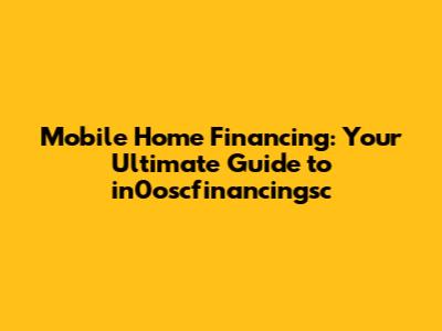 in0oscfinancingsc, from what we have researched, could be associated with a specific lender, a type of loan, or a specific program. Let's dig into some possibilities. It could be a program or product offered by a lender that specializes in mobile home financing. If it's a specific program, it could have unique features, eligibility requirements, or benefits tailored to mobile home buyers. Maybe it involves specific loan terms like fixed or adjustable rates, or different repayment options. Also, it could be a particular loan product offered by a lender, such as a conventional loan, FHA loan, or VA loan, but with specific terms or features designed for mobile home buyers. However, this is just speculation, always check with the lender directly to confirm the precise nature of the offer.