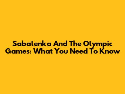 Sabalenka And The Olympic Games: What You Need To Know