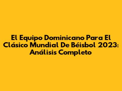 El Equipo Dominicano Para El Clásico Mundial De Béisbol 2023: Análisis Completo