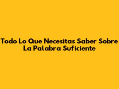 Todo Lo Que Necesitas Saber Sobre La Palabra "Suficiente"