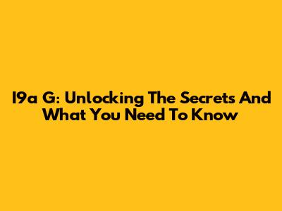I9a G: Unlocking The Secrets And What You Need To Know