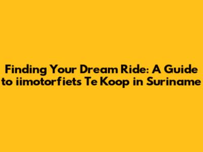 So, you're on the hunt for an iimotorfiets te koop in Suriname? Awesome! Getting a motorcycle is a fantastic way to explore the beautiful landscapes of Suriname, zip through city traffic, and experience the freedom of the open road. But with so many options out there, how do you find the perfect ride for you? Let's dive into the world of motorcycle buying in Suriname, covering everything from where to look to what to consider before making that all-important purchase. Whether you are a seasoned rider or a newbie looking for their first two-wheeled companion, understanding the nuances of the Surinamese motorcycle market is key. This guide will walk you through the various avenues for finding your ideal iimotorfiets, from online marketplaces brimming with potential deals to local dealerships offering the latest models and expert advice. We'll also explore the crucial factors to consider when evaluating a motorcycle, such as its condition, mileage, and paperwork, ensuring you make a sound investment that brings you years of riding pleasure. Furthermore, we'll delve into the legal and financial aspects of motorcycle ownership in Suriname, including registration, insurance, and potential financing options. By equipping yourself with this knowledge, you can navigate the iimotorfiets te koop landscape with confidence and secure a ride that perfectly matches your needs and budget. So, buckle up and get ready to embark on your motorcycle-buying journey in Suriname!