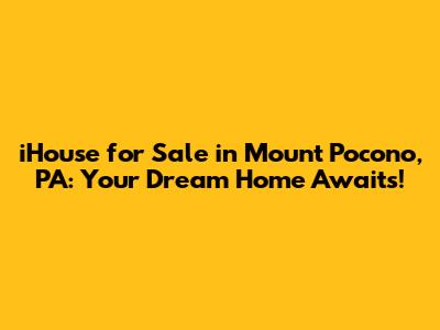 Finding an "ihouse for sale in Mount Pocono, PA" might take a little detective work, but with the right resources and a clear understanding of your needs, you'll be well on your way to finding your dream home in this beautiful area. Remember to clarify what you mean by "ihouse" and use the tips and resources outlined above to narrow down your search.