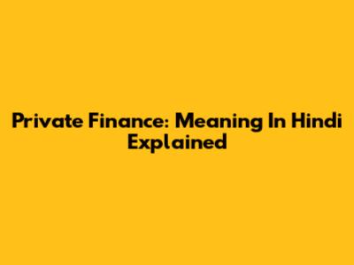 Private Finance: Meaning In Hindi Explained