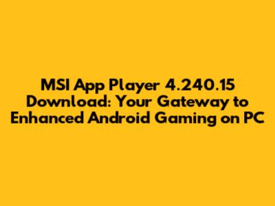 Hey guys! Are you looking to level up your Android gaming experience on your PC? Well, you're in the right place! Today, we're diving deep into the MSI App Player, specifically version 4.240.15, and how you can download it to unleash the full potential of your favorite mobile games on a bigger screen. This version comes packed with improvements and optimizations that can significantly enhance your gameplay. Let's get started!