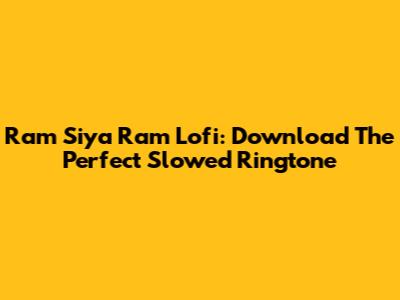 Ram Siya Ram Lofi: Download The Perfect Slowed Ringtone