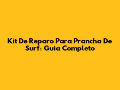 Kit De Reparo Para Prancha De Surf: Guia Completo