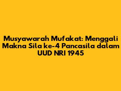 Guys, let's dive into something super important: the fourth principle of Pancasila, which is all about 'Kerakyatan yang Dipimpin oleh Hikmat Kebijaksanaan dalam Permusyawaratan/Perwakilan' – or, basically, the people's power guided by wisdom in discussions and representation. And guess what? This principle isn't just a cool idea; it's deeply embedded in our Constitution, the UUD NRI 1945. This article is all about how this fourth principle comes to life in our daily lives, especially within the framework of our laws and governance. We'll break down what this whole thing means and how it shapes Indonesia's way of doing things. Ready? Let's go!