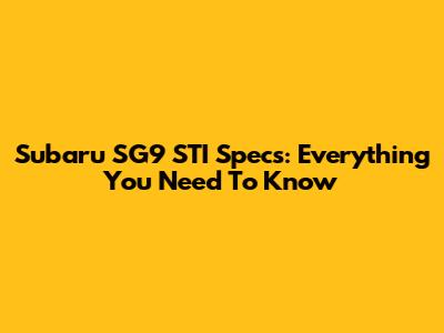 Subaru SG9 STI Specs: Everything You Need To Know