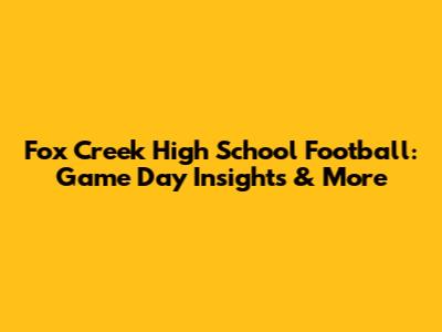 Fox Creek High School Football: Game Day Insights & More