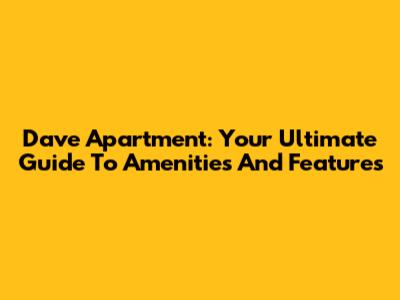 Dave Apartment: Your Ultimate Guide To Amenities And Features