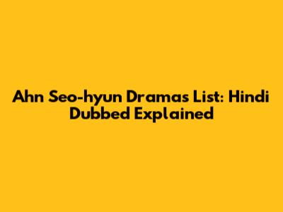 Ahn Seo-hyun Dramas List: Hindi Dubbed Explained
