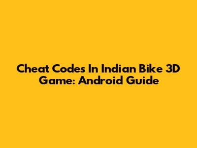Cheat Codes In Indian Bike 3D Game: Android Guide