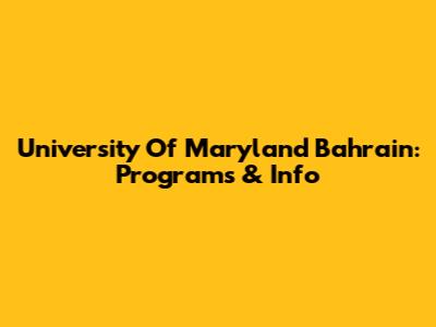 University Of Maryland Bahrain: Programs & Info