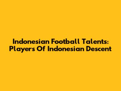 Indonesian Football Talents: Players Of Indonesian Descent