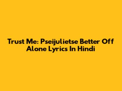 Trust Me: Pseijulietse Better Off Alone Lyrics In Hindi