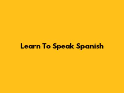 Learn To Speak Spanish