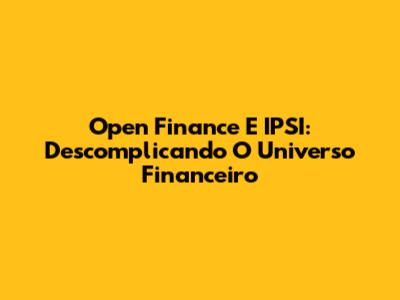 Open Finance E IPSI: Descomplicando O Universo Financeiro