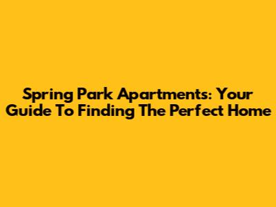 Spring Park Apartments: Your Guide To Finding The Perfect Home