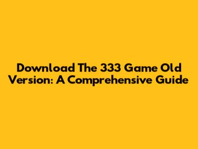 Download The 333 Game Old Version: A Comprehensive Guide