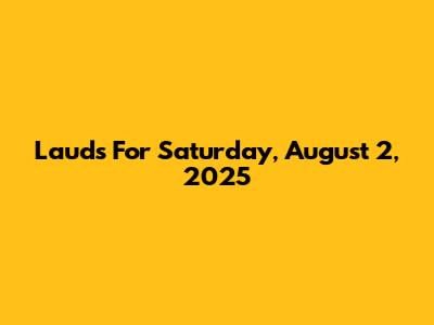 Lauds For Saturday, August 2, 2025