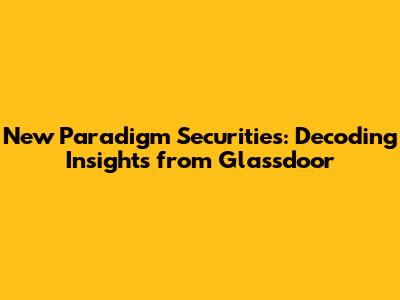 Hey everyone, let's dive into the world of New Paradigm Securities! If you're anything like me, you're always on the lookout for the lowdown on companies, especially when it comes to the financial sector. And where do we often turn? Yep, you guessed it – Glassdoor! It's a goldmine of information, offering a glimpse into what it's really like to work at a company. So, we're gonna break down what Glassdoor has to say about New Paradigm Securities, looking at everything from employee reviews to salary insights, and even the interview process. Ready to get started, guys?