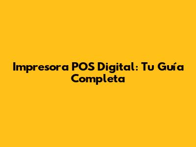 Impresora POS Digital: Tu Guía Completa