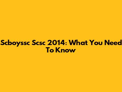 Scboyssc Scsc 2014: What You Need To Know