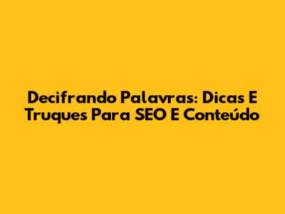 Decifrando Palavras: Dicas E Truques Para SEO E Conteúdo
