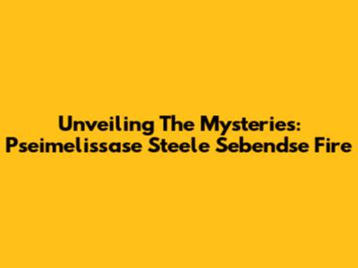 Unveiling The Mysteries: Pseimelissase Steele Sebendse Fire