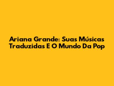 Ariana Grande: Suas Músicas Traduzidas E O Mundo Da Pop