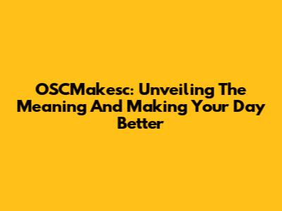 OSCMakesc: Unveiling The Meaning And Making Your Day Better
