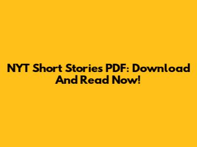 NYT Short Stories PDF: Download And Read Now!