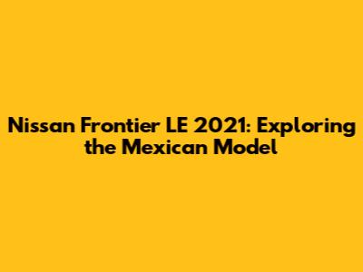 The Nissan Frontier LE 2021 (Mexican Model) was a solid contender in the mid-size truck market in Mexico. By understanding its features, specifications, performance, reliability, and value, you can make an informed decision about whether it's the right truck for you. Remember to consider your specific needs and priorities when evaluating any vehicle. Happy truck hunting!