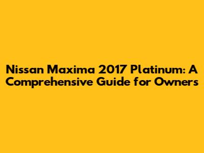 Common Issues and Nissan Maxima 2017 Platinum Repair Guide