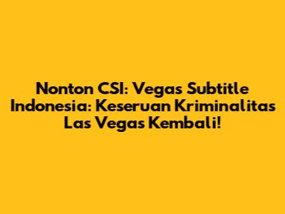 Apa kabar, para penggemar serial detektif? Kalian pasti sudah kangen dong dengan drama, teka-teki, dan aksi seru dari dunia forensik? Nah, Nonton CSI: Vegas Subtitle Indonesia adalah jawabannya! Serial ini membawa kembali warisan ikonik CSI ke layar kaca, kali ini dengan sentuhan modern dan kasus-kasus yang lebih kompleks. Buat kalian yang suka banget sama investigasi pembunuhan, analisis sidik jari, DNA, dan semua hal yang bikin otak berputar, CSI: Vegas wajib banget kalian tonton. Bersiaplah untuk menyelami laboratorium forensik yang canggih dan menyaksikan para ahli mengungkap kebenaran di balik kejahatan paling rumit di kota gemerlap, Las Vegas. Dengan subtitle Indonesia, kalian bisa menikmati setiap detail dialog dan intrik tanpa ketinggalan sedikit pun. Yuk, kita bahas lebih dalam kenapa serial ini layak banget masuk watchlist kalian, guys!